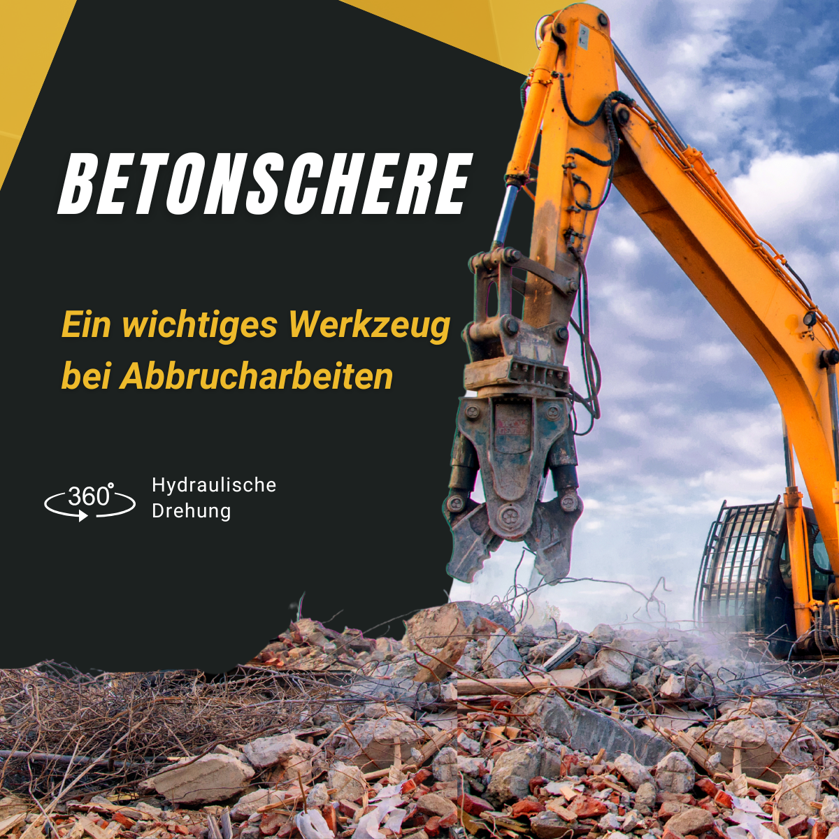 Anbaugeräte für Bagger in Form von Hämmern, Scheren und Backen - Kraft, die bis in die Fundamente reicht